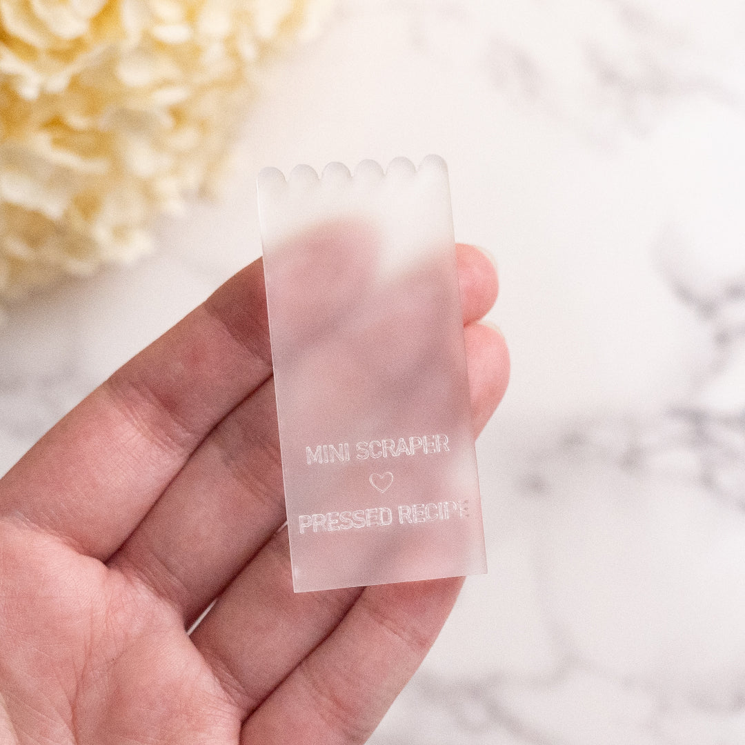 Designed and manufactured by Pressed Recipe. This mini scraper is the perfect tool for working to achieve a two tone fondant effect